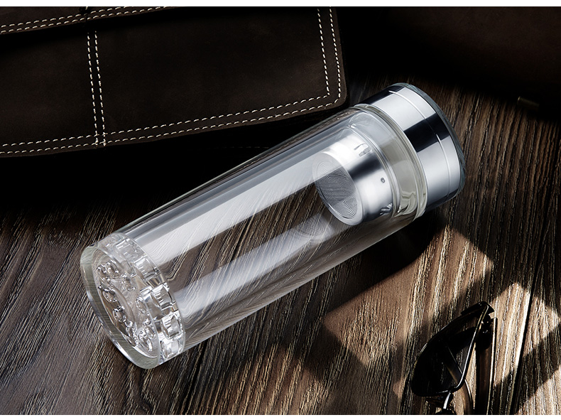 創意雙層波點底玻璃杯帶蓋茶杯批量訂定制印LOGO