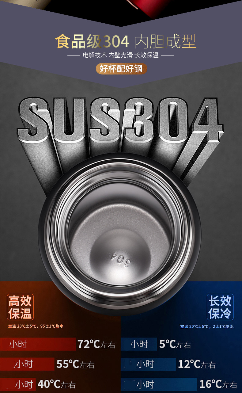 新款304高檔水杯不銹鋼真空保溫杯定制創(chuàng)意商務(wù)禮品杯