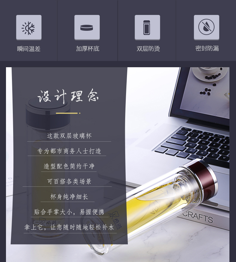 希諾玻璃杯旗艦店官網(wǎng)男女士雙層隔熱防燙商務(wù)簡(jiǎn)約泡茶便攜水杯