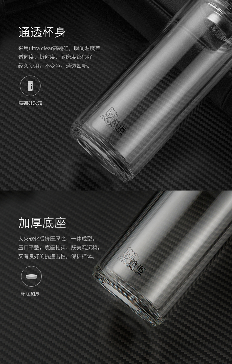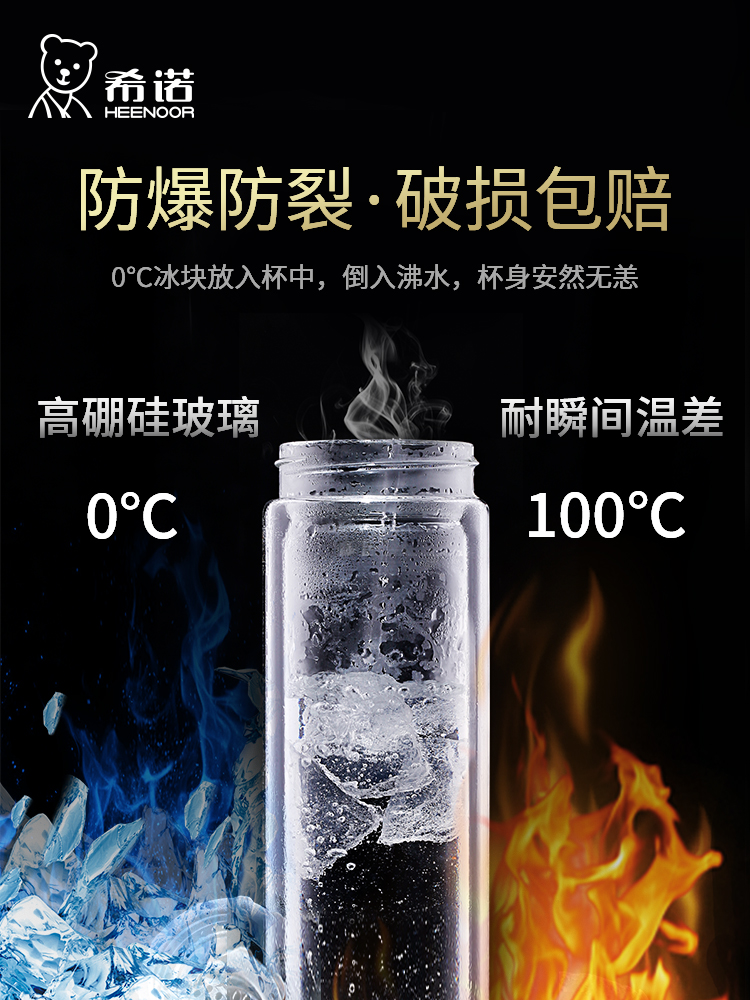 希諾雙層玻璃杯茶水分離水杯男家用透明過濾泡茶杯子高檔送禮商務
