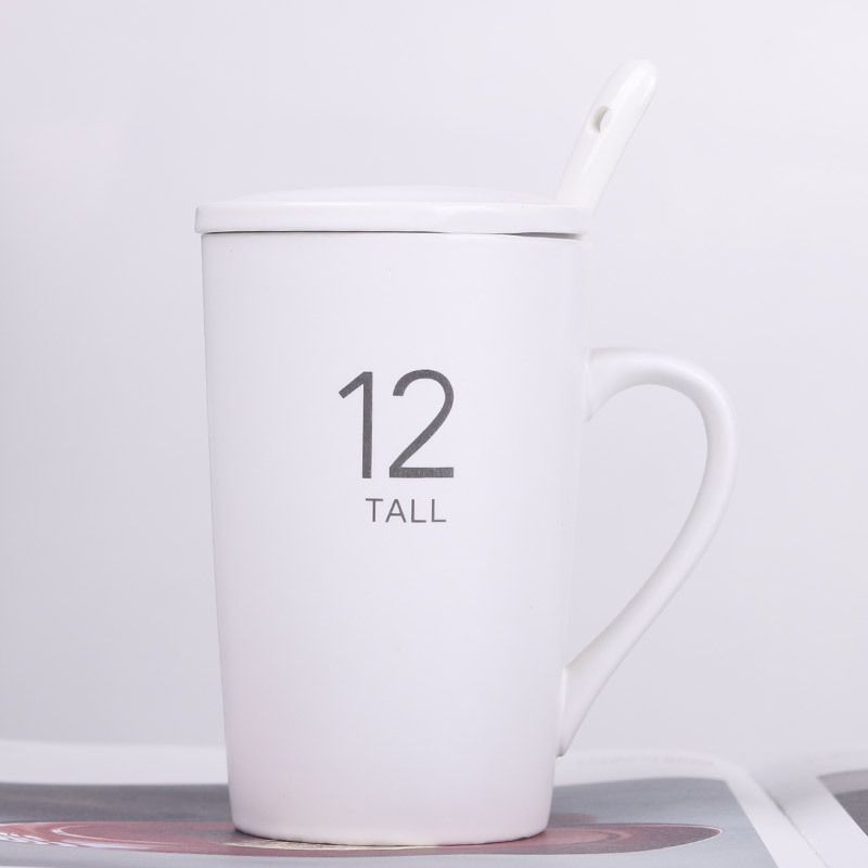 12號杯12盎司馬克杯 16數(shù)字陶瓷杯帶蓋 早餐牛奶咖啡杯可印logo